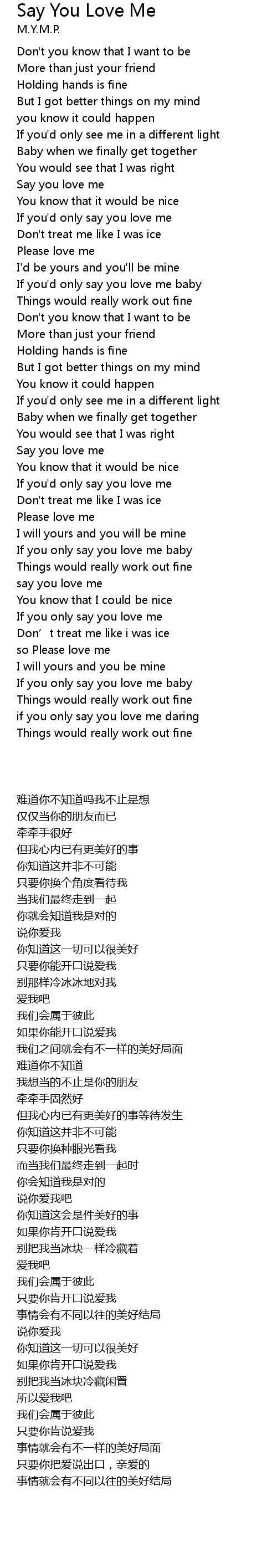 You don't seem to realize how much i've always . You see the day that you love me i'll no longer wonder. Original lyrics of just say you love me song by malachi crunch. Here you will find the lyrics to the songs of chris norman. You love the idea of me.